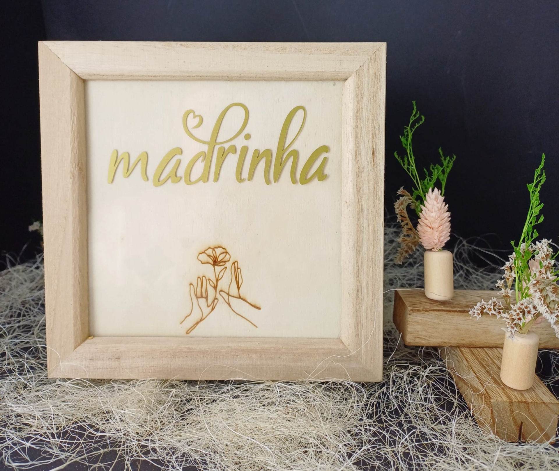 Caixa de Madeira com tampa em vidro 16,5cm x 16,5cm x 9cm