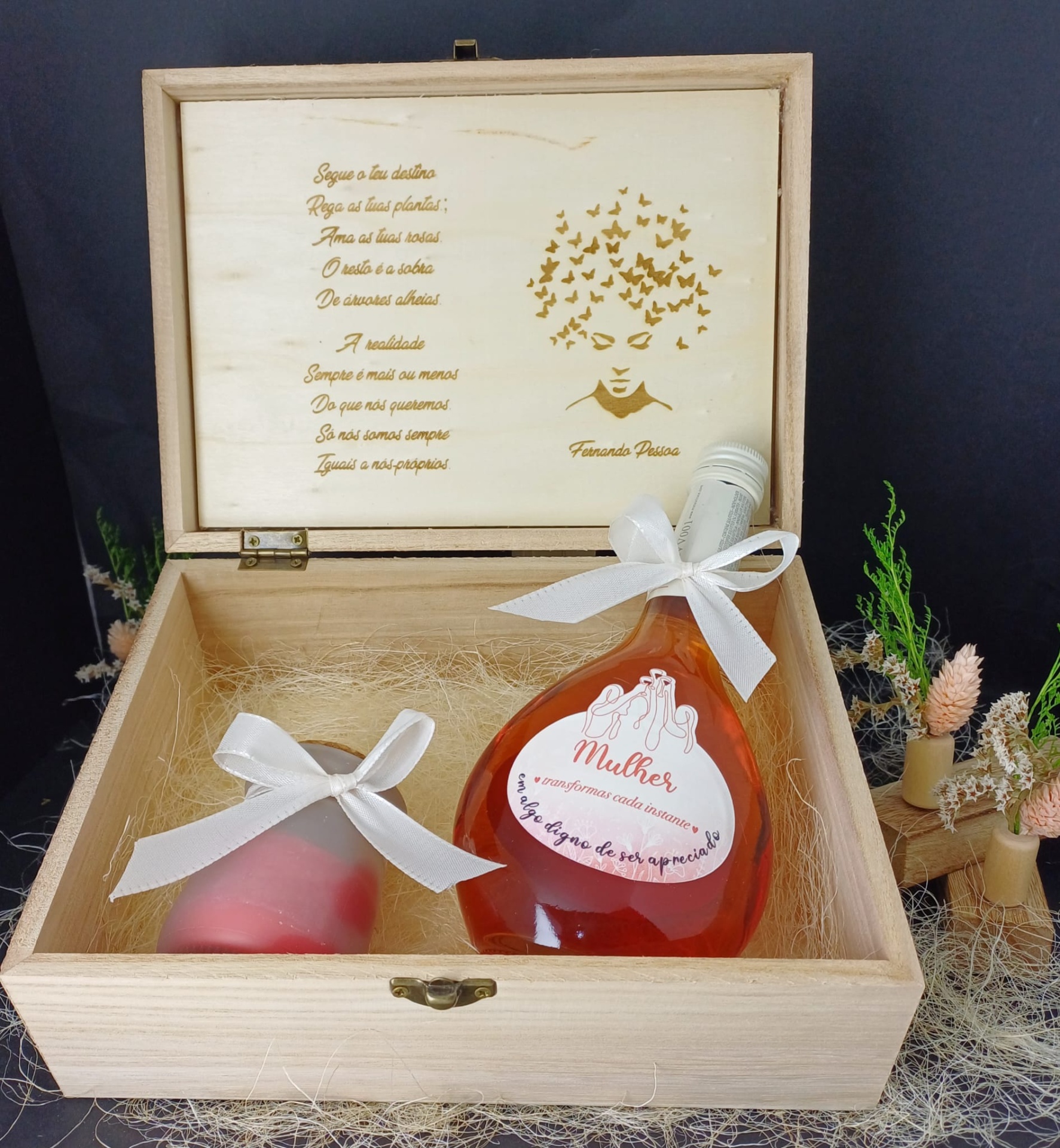 Caixa Mulher 25,00 € Desconto de %. Partilhar Comprar Contactar Caixa de Madeira com tampa em vidro 16,5cm x 16,5cm x 9cm No interior: Garrafa Mateus 150ml Vela Aromática com tampa de cortiça
